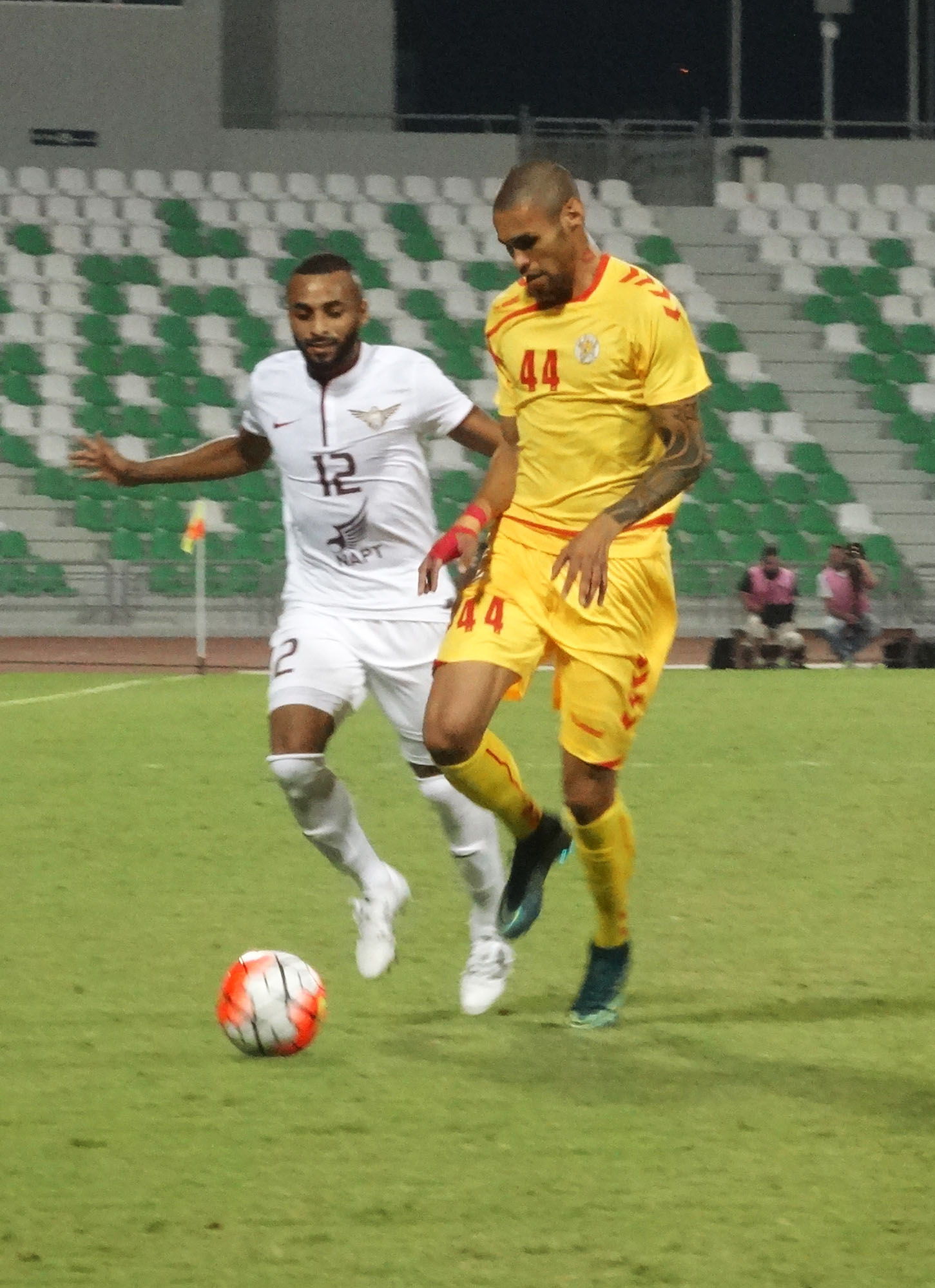 تاريخ الإضافة : 2015-11-07فاز الجيش علي مسيمير 5-2 اليوم السبت في ختام المرحلة الثامنة من دوري نجوم قطر, وسجل اهداف الجيش البرازيلي رومارينيو ريكاردو (10 و44) والاوزبكستاني ساردور راشيدوف (14 و36) وماجد محمد (87)، ولمسيمير عبد الرحمن سمير (35 ) والبرازيلي اريفيلتو اميلانو دا سيلفا (85). وبهذا الفوز احتل الجيش المركز الثاني بفارق 4 نقاط فقط عن الريان متصدر الجدول بعد ان رفع رصيده الى 20 نقطة بينما تجمد رصيد مسيمير عند 3 نقاط في المركز الاخير.